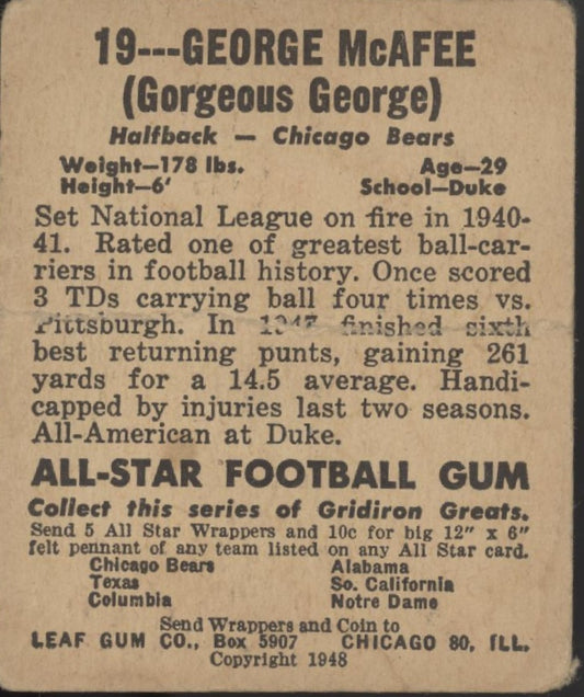 George McAfee 1948 Leaf #19 Chicago Bears PR #2