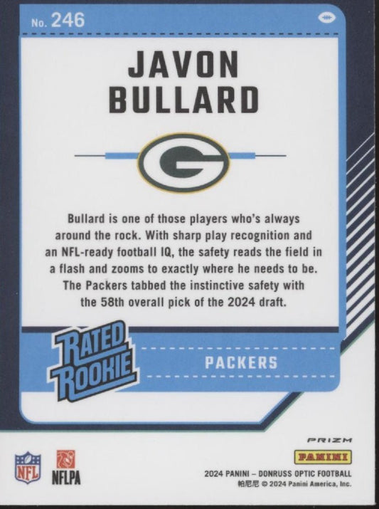 Javon Bullard 2024 Panini Donruss Optic Rated Rookie Green Lazer Prizm RC #246