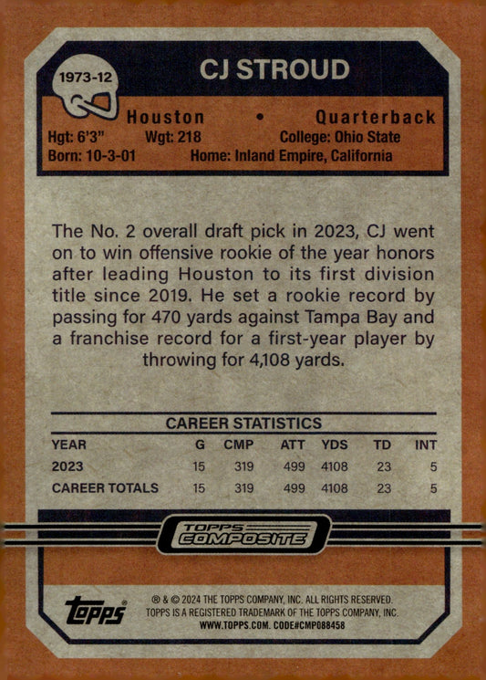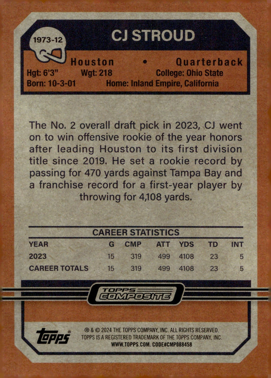 CJ Stroud 2023 Topps Composite 1973 RC #1973-12