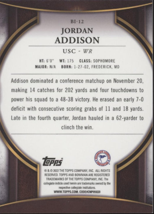 Jordan Addison 2022 Bowman Invicta Refractor #BI-12