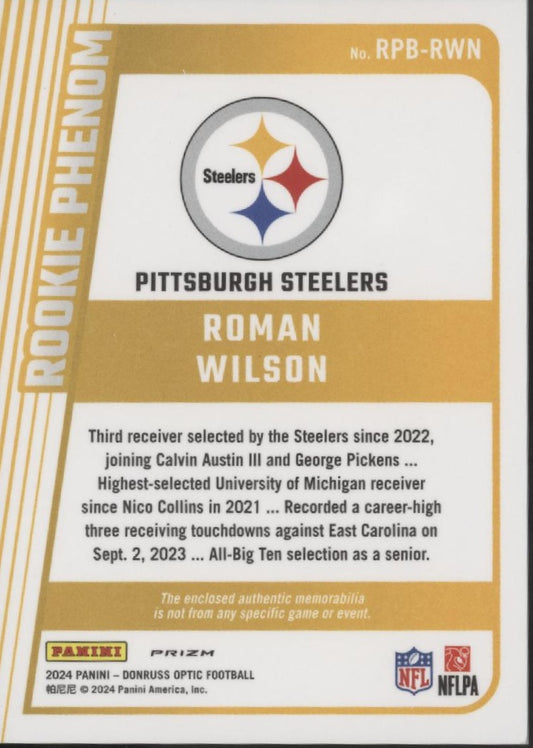 Roman Wilson 2024 Donruss Optic Rookie Phenom Blue Hyper Prizm Swatch RC #RPBRWN