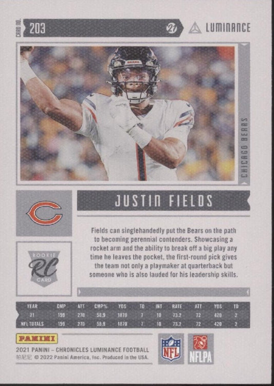 Justin Fields 2021 Panini Chronicles Luminance Purple RC #203
