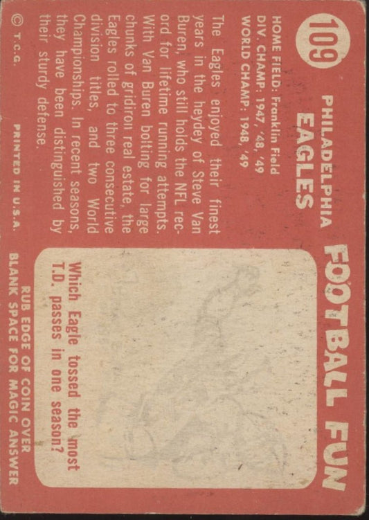 Philadelphia Eagles 1958 Topps Team Card #109 VG-EX