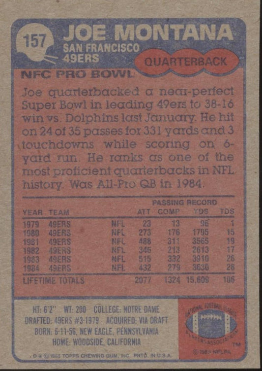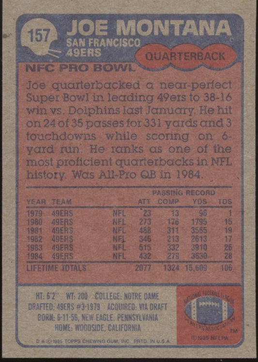 Joe Montana 1985 Topps #157 San Francisco 49ers #4