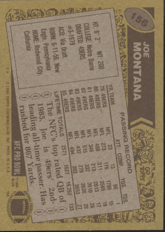 Joe Montana 1986 Topps #156 San Francisco 49ers #7