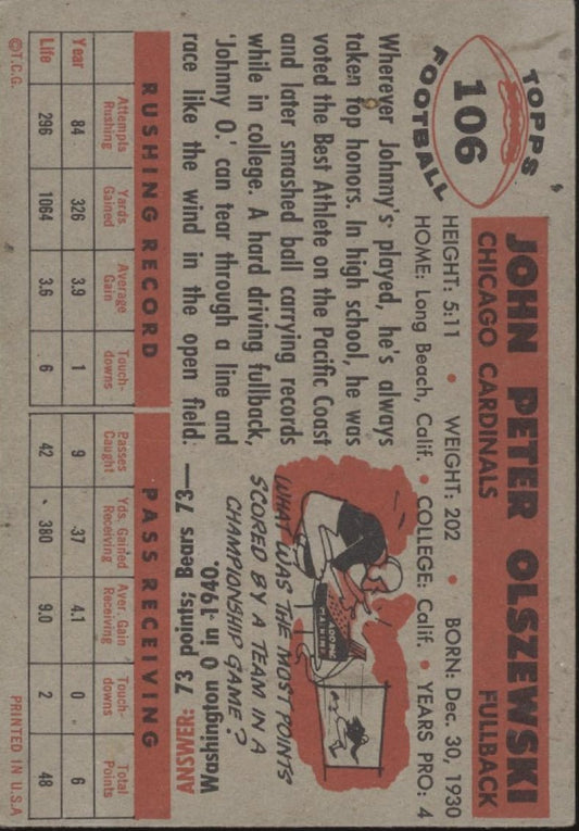 John Olszewski 1956 Topps #106 Chicago Cardinals VG