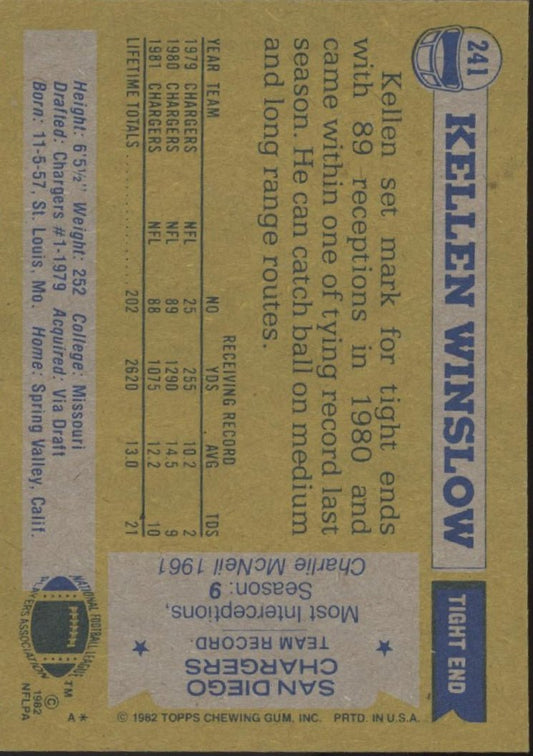 Kellen Winslow 1982 Topps #241 San Diego Chargers