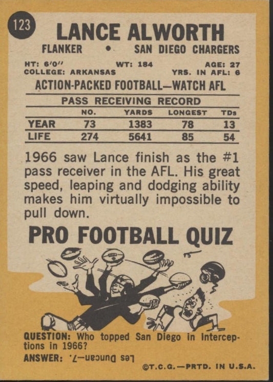 Lance Alworth 1967 Topps #123 San Diego Chargers EX-NM