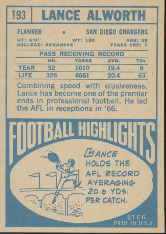 Lance Alworth 1968 Topps #193 San Diego Chargers NM