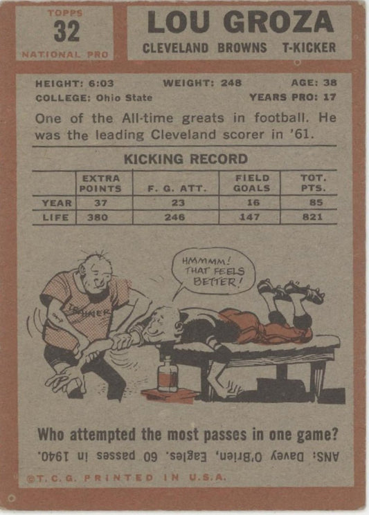 Lou Groza 1962 Topps #32 Cleveland Browns VG-EX