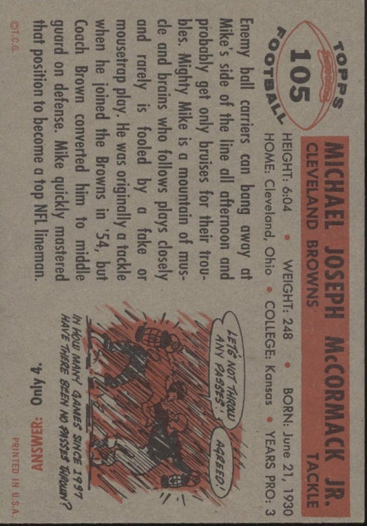 Mike McCormack 1956 Topps #105 Cleveland Browns VG-EX
