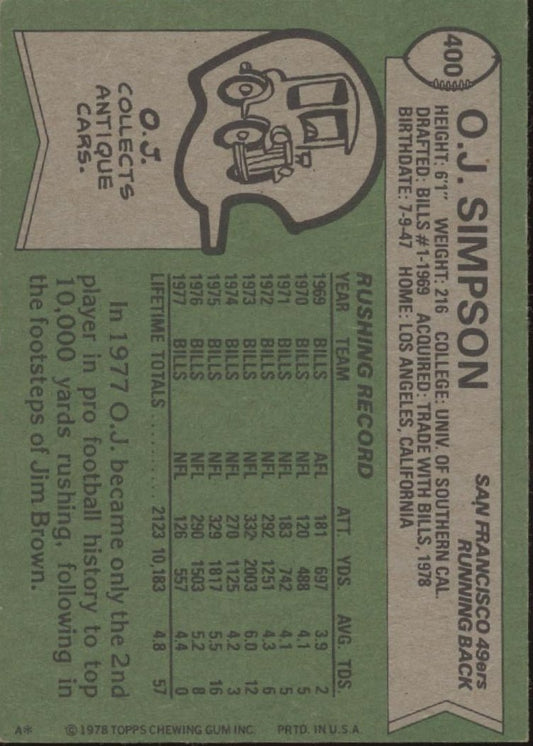 OJ Simpson 1978 Topps #400 San Francisco 49ers EX
