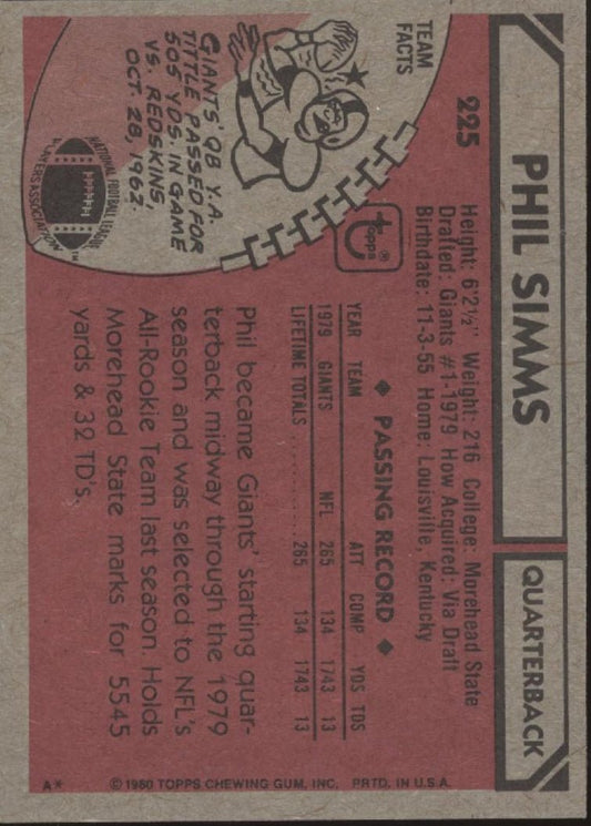 Phil Simms 1980 Topps RC #225 New York Giants EX #3