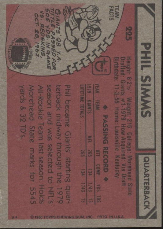 Phil Simms 1980 Topps RC #225 New York Giants EX #5