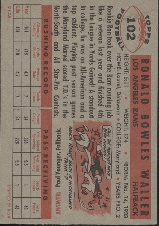 Ron Waller 1956 Topps RC #102 Los Angeles Rams EX