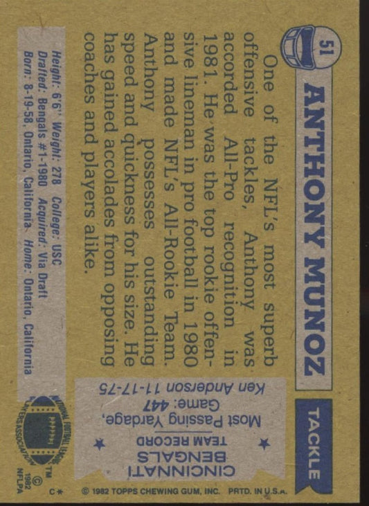 Anthony Munoz 1982 Topps RC #51 Cincinnati Bengals #2