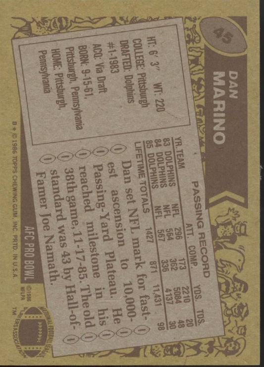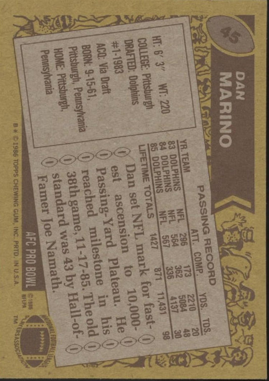 Dan Marino 1986 Topps #45 Miami Dolphins #3