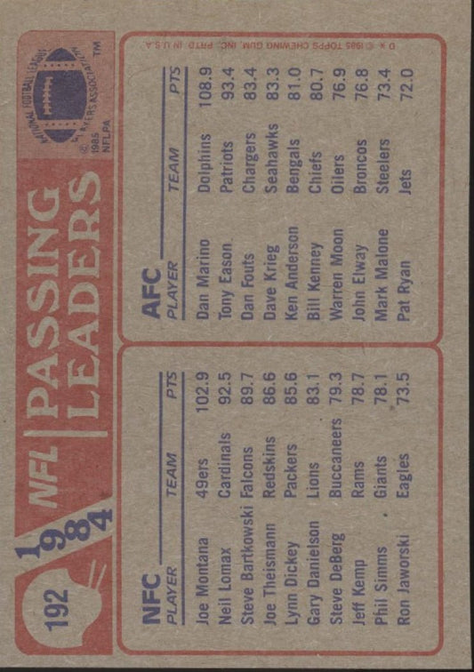 Dan Marino / Joe Montana 1985 Topps Passing Leaders #192
