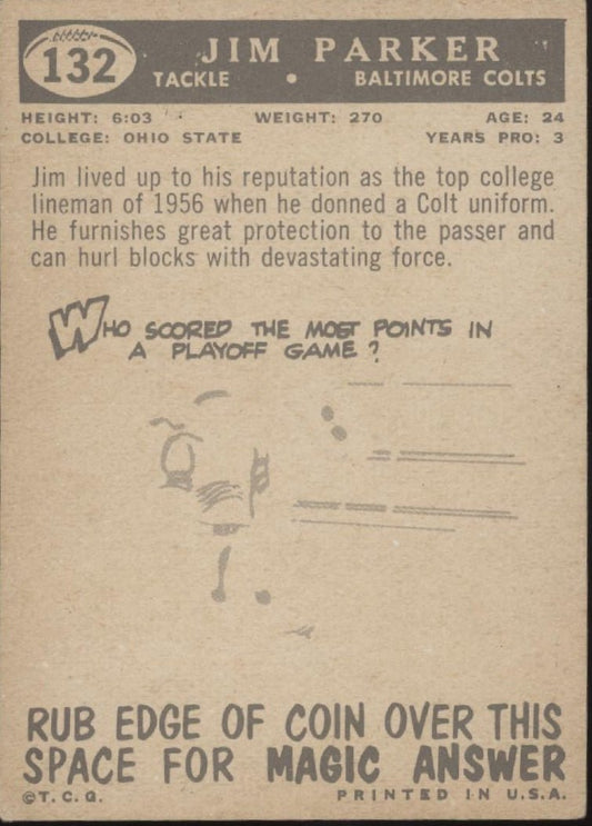 Jim Parker 1959 Topps RC #132 Baltimore Colts VG