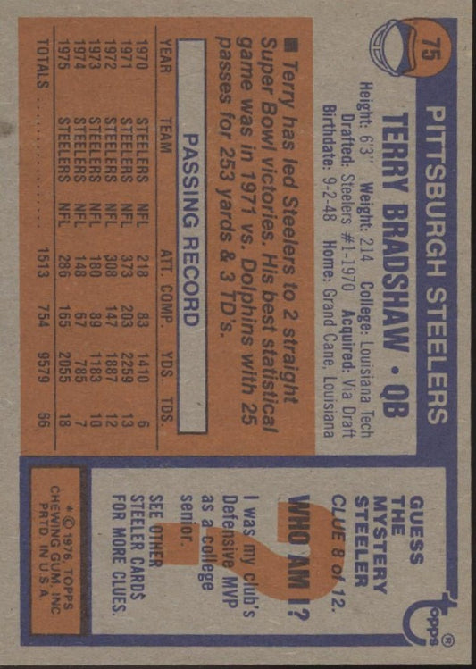 Terry Bradshaw 1976 Topps #75 Pittsburgh Steelers EX