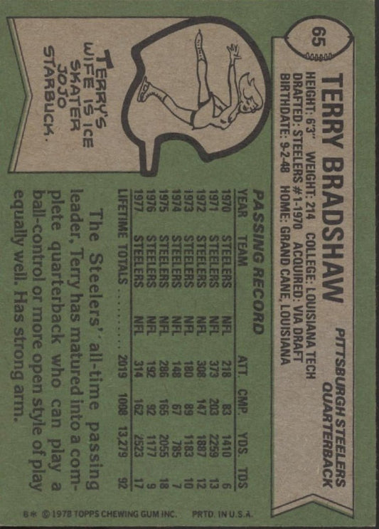 Terry Bradshaw 1978 Topps #65 Pittsburgh Steelers EX