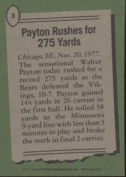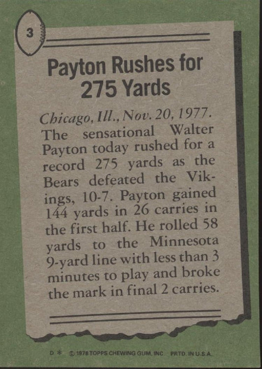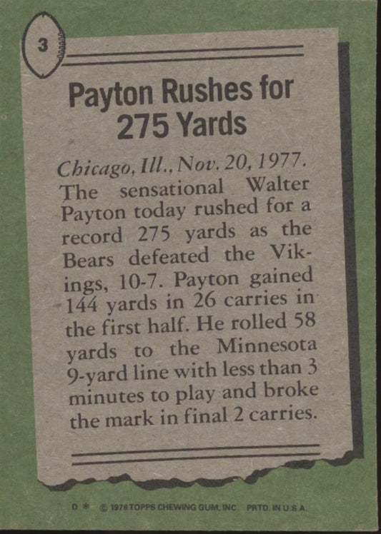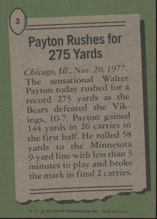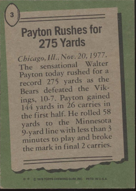 Walter Payton 1978 Topps Rushes for 275 Yards #3 EX-NM #3