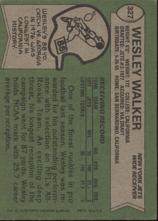 Wesley Walker 1978 Topps RC #327 New York Jets EX