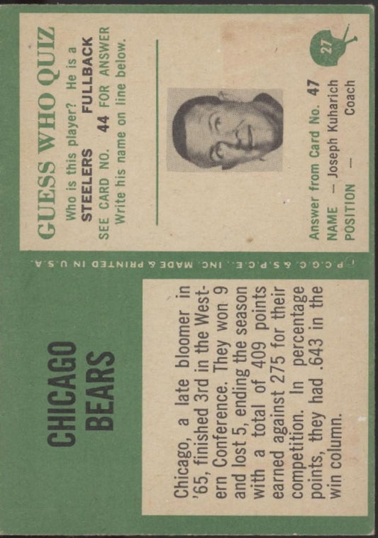 Chicago Bears 1966 Philadelphia Team Card #27 VG-EX