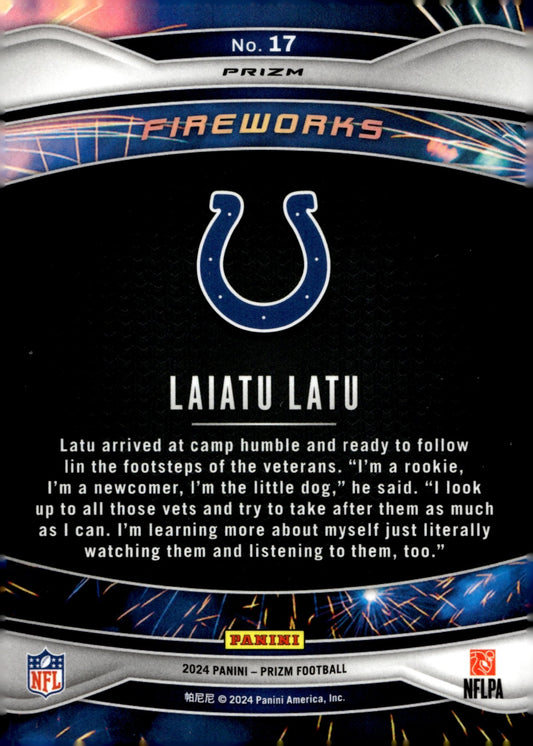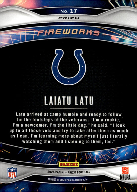 Laiatu Latu 2024 Panini Prizm Fireworks Green Prizm RC #17