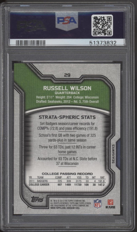Russell Wilson 2012 Topps Strata Hold Ball with Two Hands RC #29 PSA 9