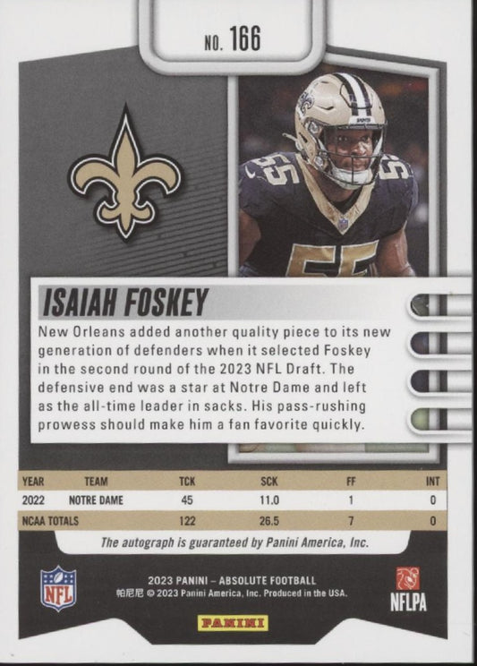 Isiah Foskey 2023 Panini Absolute Orange RC Auto 39/75 #166