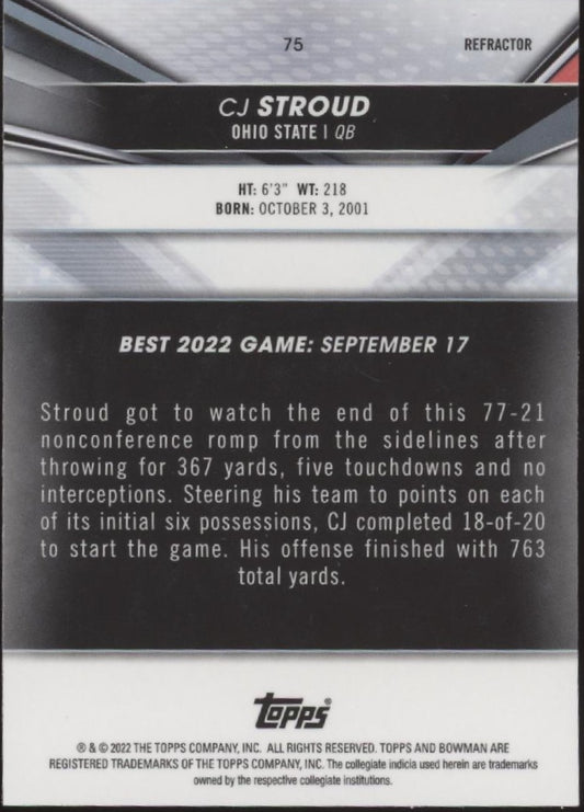 CJ Stroud 2022 Bowman University Refractor #75