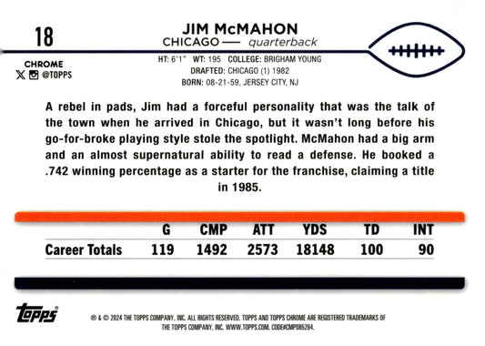Jim McMahon 2024 Topps Chrome Purple Refractor 225/275 #18