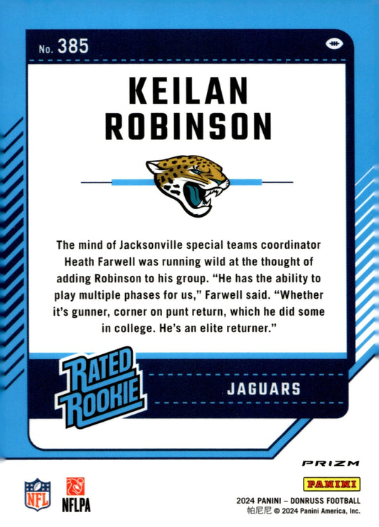 Keilan Robinson 2024 Panini Donruss Rated Rookie Pink Prizm RC #385