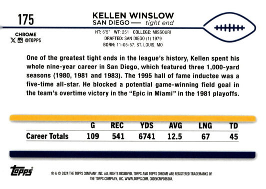 Kellen Winslow 2024 Topps Chrome Blue Refractor 138/150 #175
