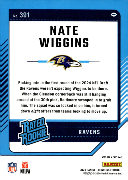 Nate Wiggins 2024 Panini Donruss Rated Rookie Tri Color Prizm RC #391