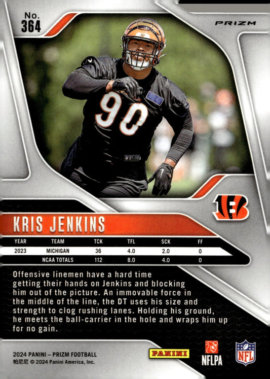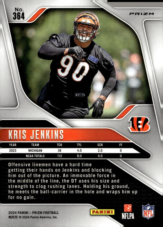 Kris Jenkins 2024 Panini Prizm Orange No Huddle Prizm RC #364