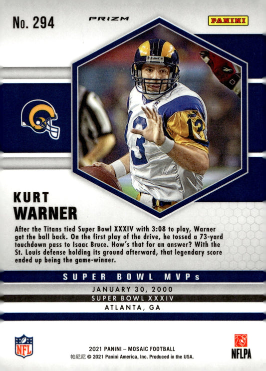Kurt Warner 2024 Panini Mosaic Super Bowl MVPs Green Prizm #294