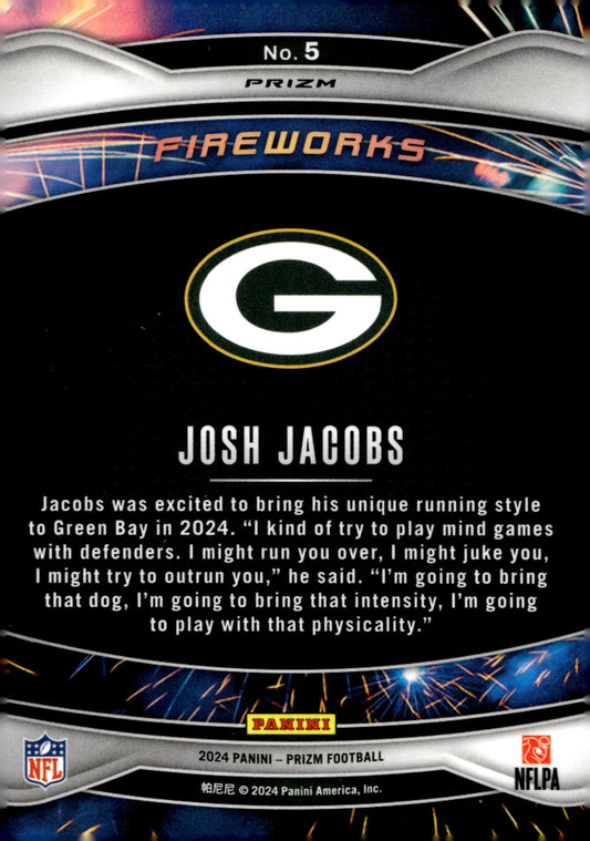 Josh Jacobs 2024 Panini Prizm Fireworks Green Prizm #5