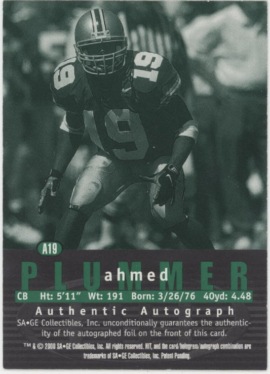 Ahmed Plummer 2000 Sage Hit Auto #A19