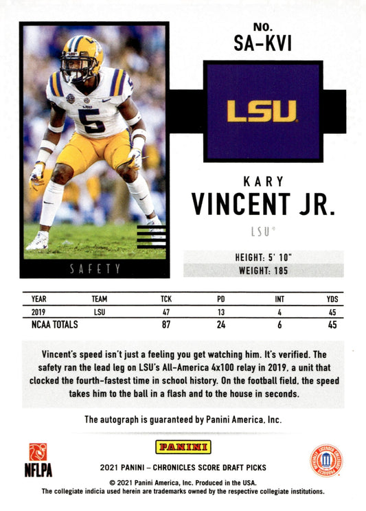Kary Vincent Jr. 2021 Panini Chronicles Score Draft Picks RC Auto #SA-KVI