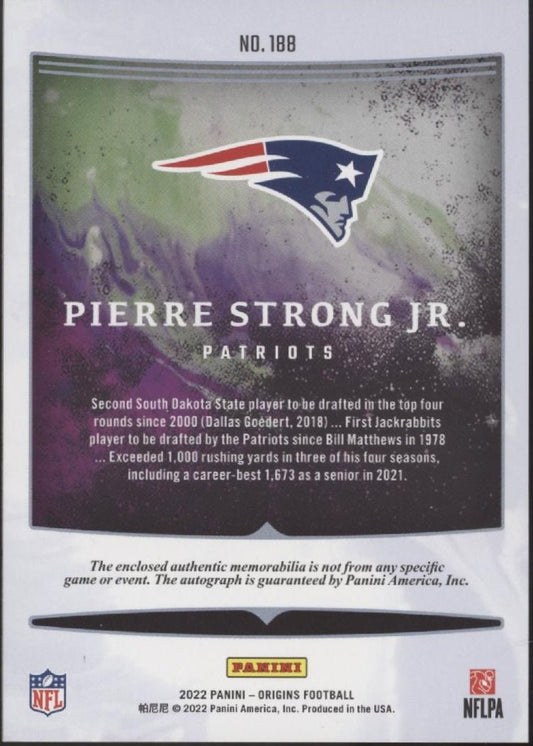 Pierre Strong Jr. 2022 Panini Origins Swatch RC Auto #188