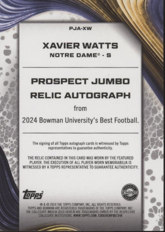 Xavier Watts 2024 Bowman University's Best Swatch Auto 16/49 #PJA-XW
