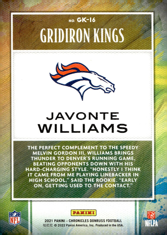 Javonte Williams 2021 Panini Chronicles Donruss Gridiron Kings Pink RC #GK-16
