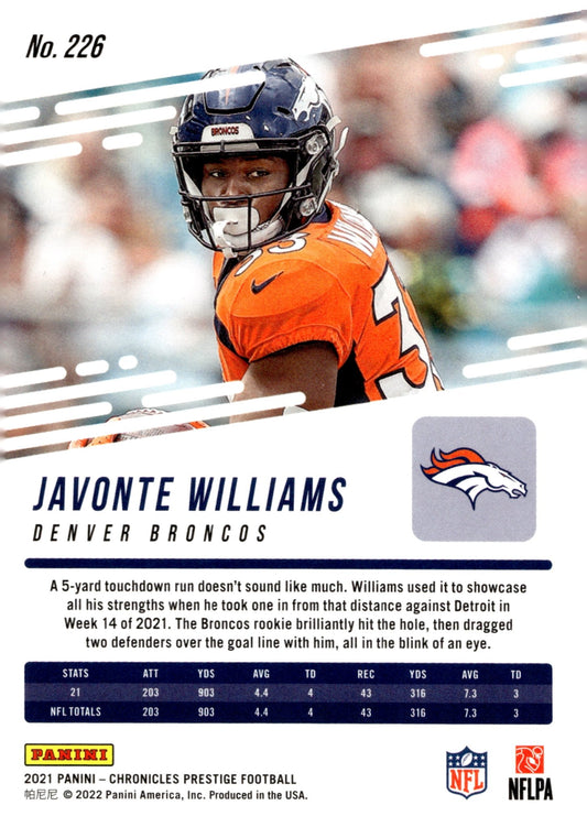 Javonte Williams 2021 Panini Chronicles Prestige RC #226