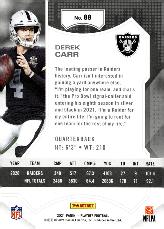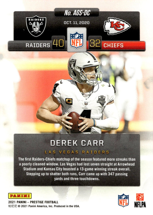 Derek Carr 2021 Panini Prestige Any Given Sunday #AGS-DC #2