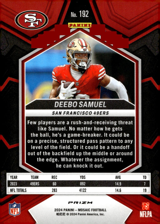 Deebo Samuel 2024 Panini Mosaic Blue Prizm #192