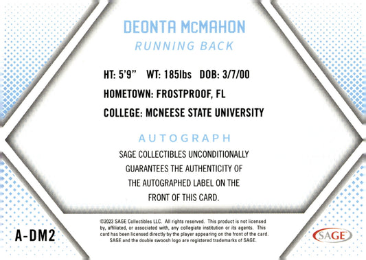 Deonta McMahon 2023 Sage Red Auto #A-DM2
