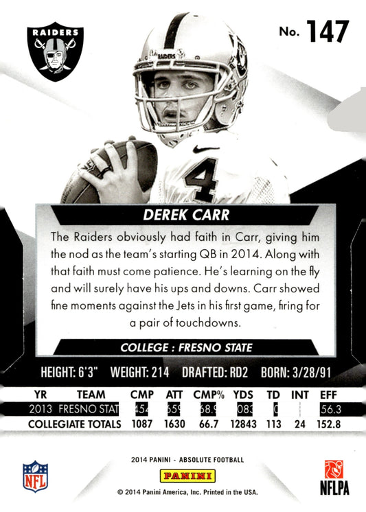 Derek Carr 2014 Panini Absolute Die-Cut RC #147