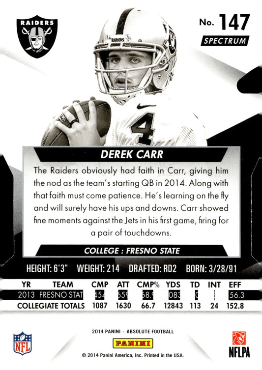 Derek Carr 2014 Panini Absolute Die-Cut Spectrum Red RC #147